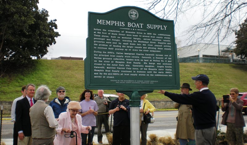 Before the completion of Riverside Drive in 1936 the cobblestones at the foot of Beale Street were home to several boat supply stores. These stores, built on anchored barges, served countless vessels, passenger and freight, traveling the Mississippi River. Supplies and groceries were sent by small boats into the river channel solving the problem of landing the larger vessels and allowing these vessels to continue their journey up or down the river unimpeded.